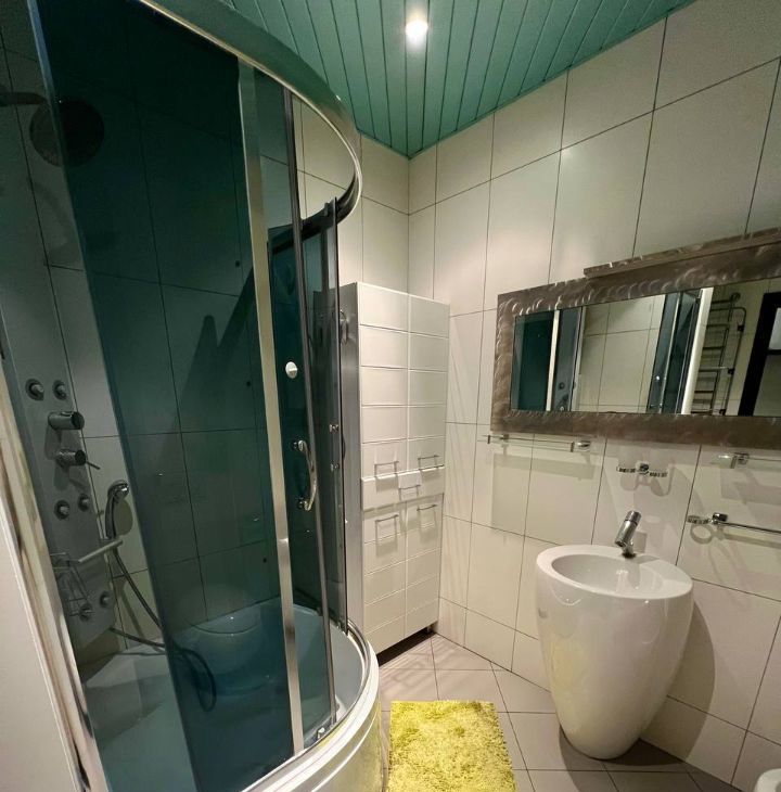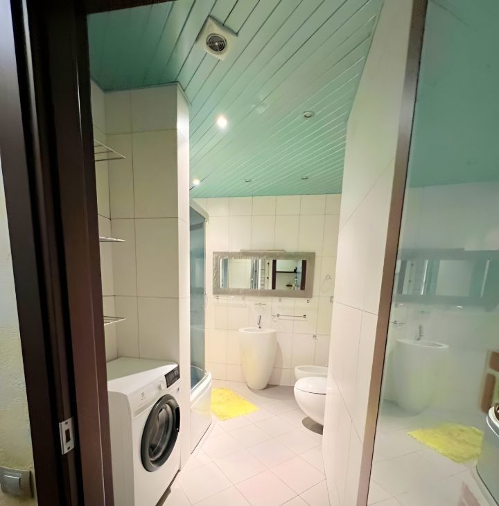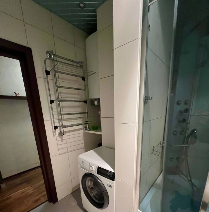 Совмещённый санузел с бойлером, стиральной и сушильной машинами.