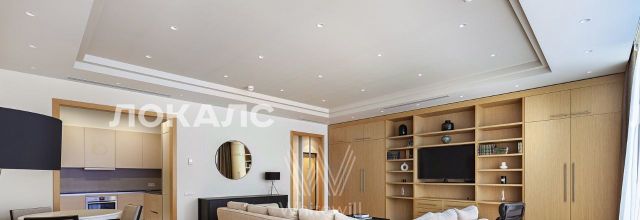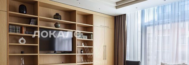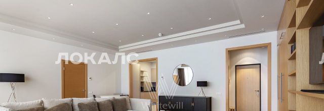 Стильная квартира с 1-й спальней в клубном доме на Пресне. Квартира общей площадью 107 м² расположена на 7 этаже. В квартире выполнен дизайнерский ремонт. В интерьере использовано натуральное дерево теплого оттенка.