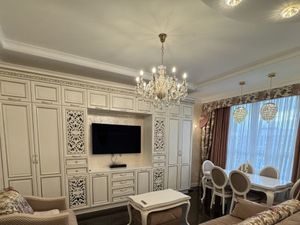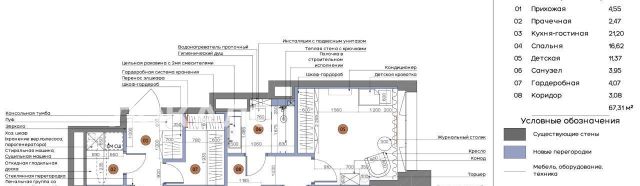 В каждой жилой комнате висит кондиционер. Теплый пол в прихожей. В санузле широкая раковина для двоих и теплая стена в зоне душа для сушки полотенец. Оборудованы постирочная и гардеробная, есть ручной пылесос.