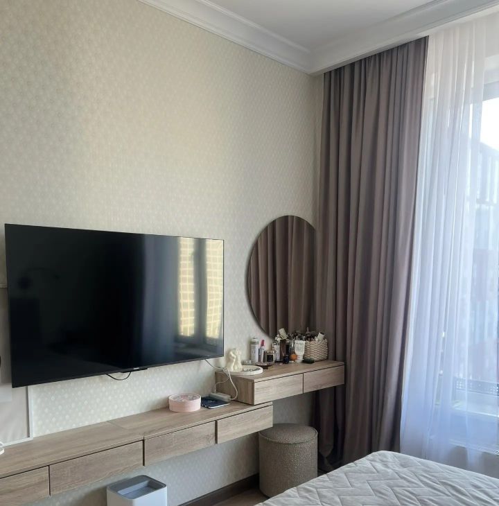 в квартире гостиная совмещена с кухней, 2 спальни, в коридоре гардеробная со стиральной машиной. Вид из гостиной на залив и обустроенную для прогулок и отдыха набережную. Внутренний двор имеет детскую площадку и есть переходы в соседние дворы с зонами для активного отдыха, спорта и пикников. В 300м будет построена школа.