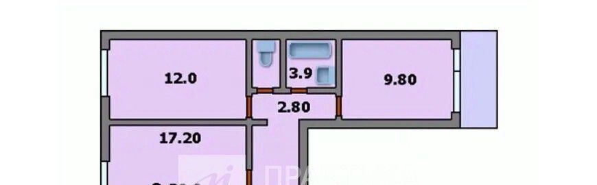 - три изолированные комнаты 17,2+9,8+12 кв.м;