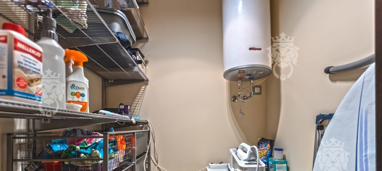 Две оборудованных гардеробных комнаты, комната для хранения чемоданов(кладовая) и комната бытового назначения-постирочна.