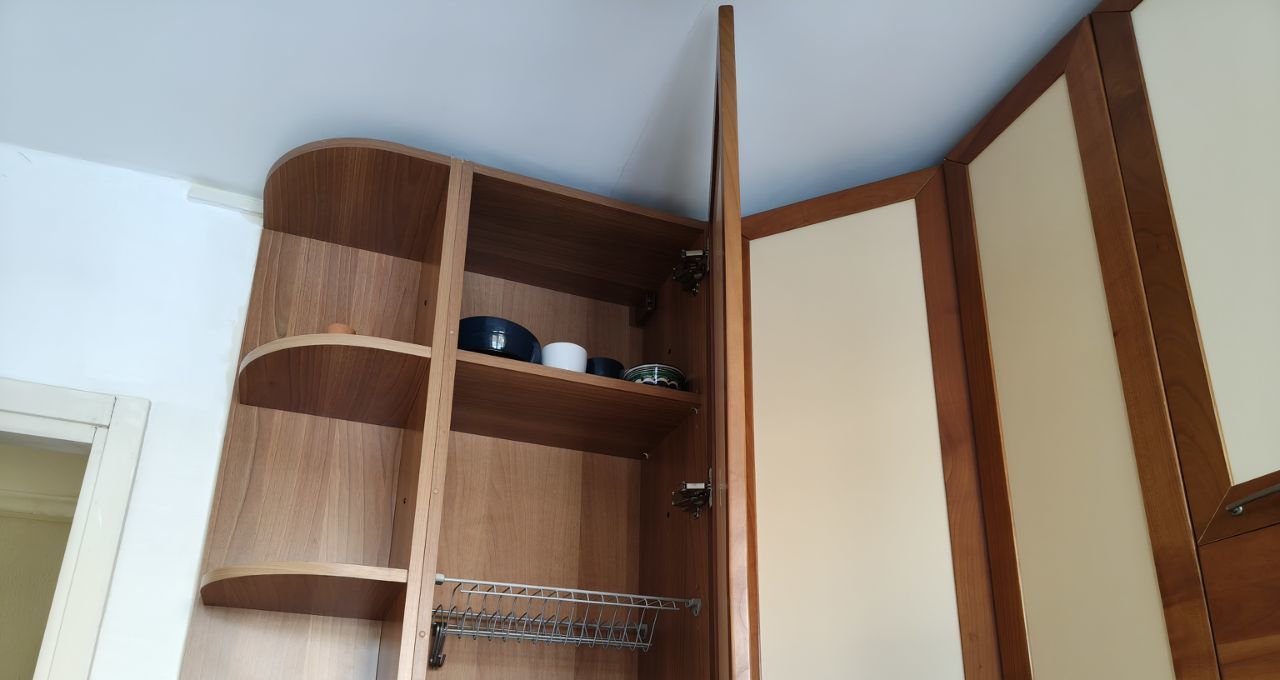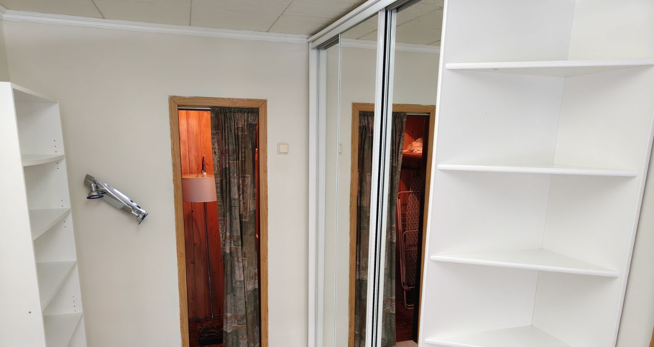 Одна комната изолирована с мебелью, две смежно-изолированы с телевизором и с большим шкафом, есть кладовка. В коридоре тоже вместительный шкаф-купе.