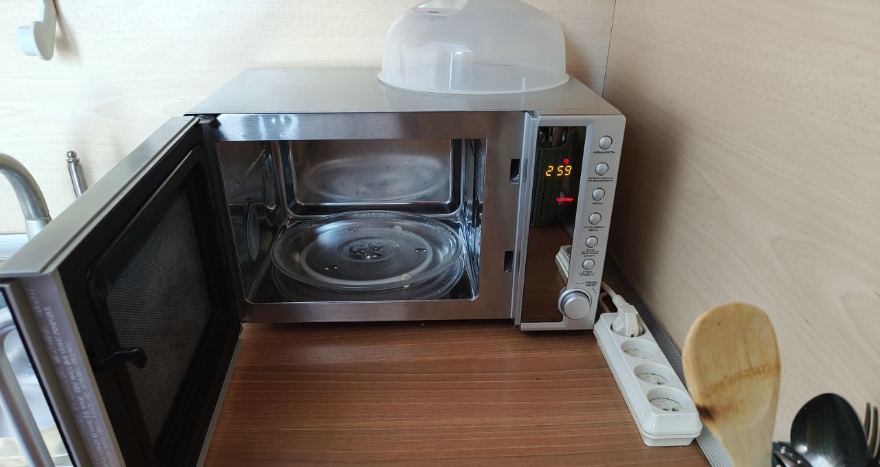 На кухне газовая плита с духовкой, холодильник, посудомоечная машинка, микроволновая печь, вытяжка, стол обеденный.
