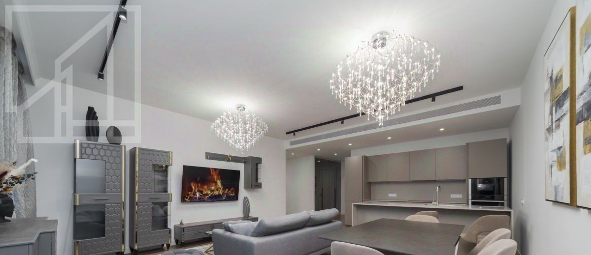 Планировка: 2 спальни (одна из них мастер спальня с гардеробной и своим санузлом с душем), второй санузел с ванной, кухня-гостиная, вторая гардеробная при входе, постирочная, балкон.