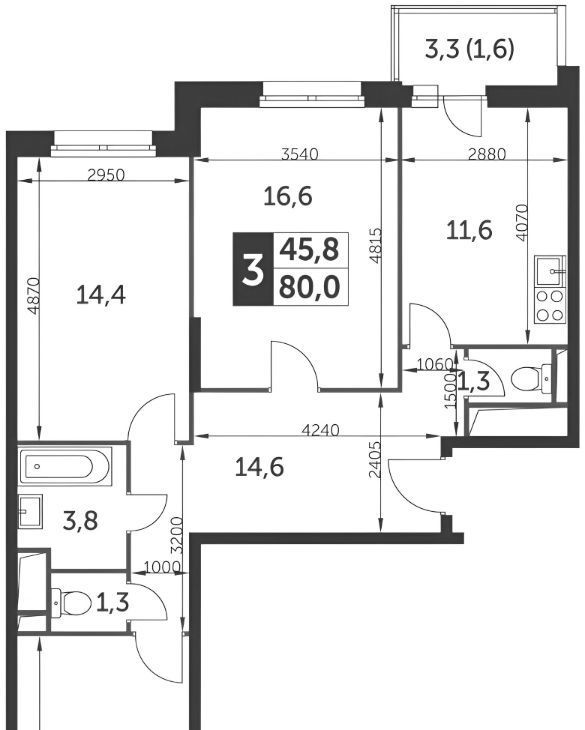 3-к кв. Москва ул. Красная Сосна, 3 (80.0 м²)