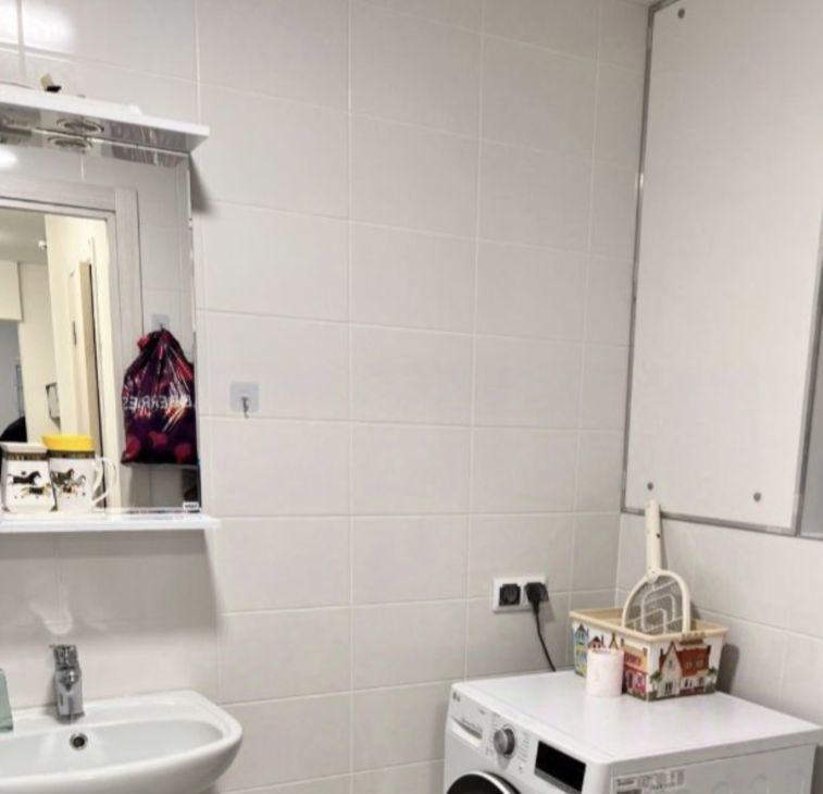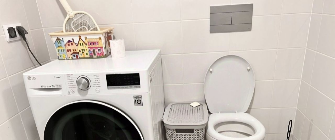 В квартире есть вся необходимая мебель и техника: холодильник, плита, микроволновая печь, духовка, стиральная машина, пылесос, телевизор, диван-кровать, кровать, обеденный стол и стулья.