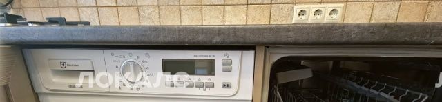 Кухня с необходимой техниклй: посудомоечная и стиральные машины, свч, чайник.