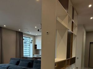 В квартире есть все необходимое для вашего комфортного проживания. Уютная спальня с большой кроватью и гардеробной. Просторная кухня гостиная в которой располагается обеденный стол, кухонный гарнитур оснащенный всей необходимой бытовой техникой, а так же гостевая зона с диваном для вашего комфортного отдыха. Два сан узла, один с ванной а второй душевая кабина. Вторая комната так же имеет гардеробную, кровать и рабочее место. Третья комната пустая, доукомплектуется по запросу жильцов.