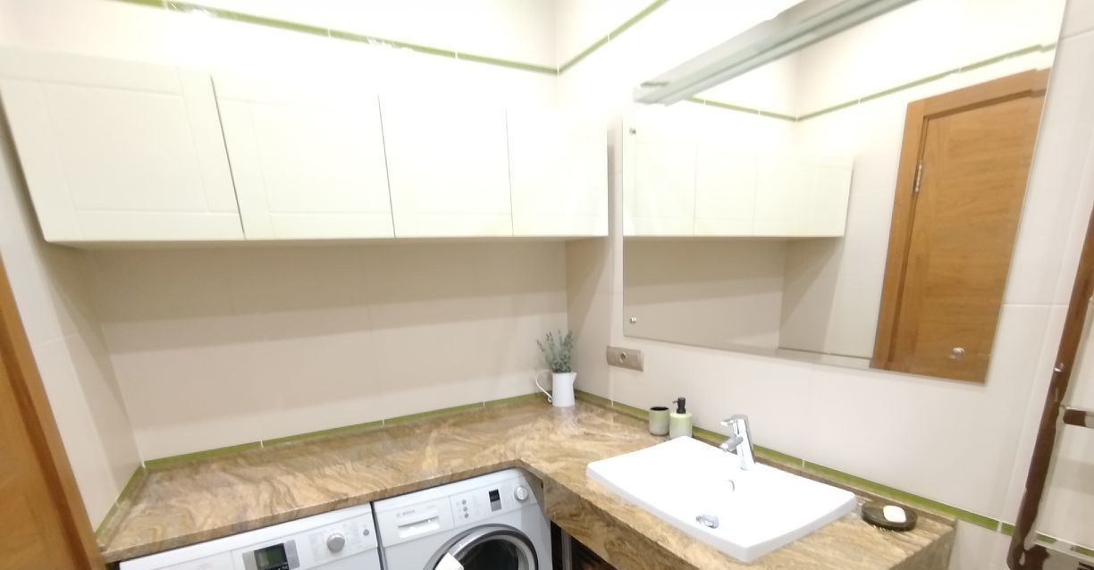 В квартире выполнен косметический ремонт. Здесь есть все необходимое для комфортной жизни: кондиционер, холодильник, посудомоечная машина, телевизор, стиральная и сушильная машина. Мебель установлена на кухне и в комнате, что позволяет сразу заехать и наслаждаться уютом. Просторная кухня площадью 8 кв. м станет отличным местом для семейных посиделок. Ванная комната оснащена ванной, а отдельный санузел добавляет удобства.