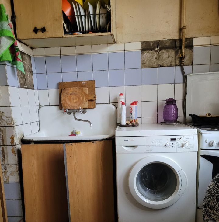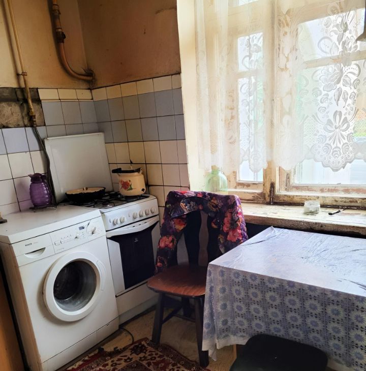 В квартире сохранилась аутентичная обстановка с момента строительства дома. Большой коридор,