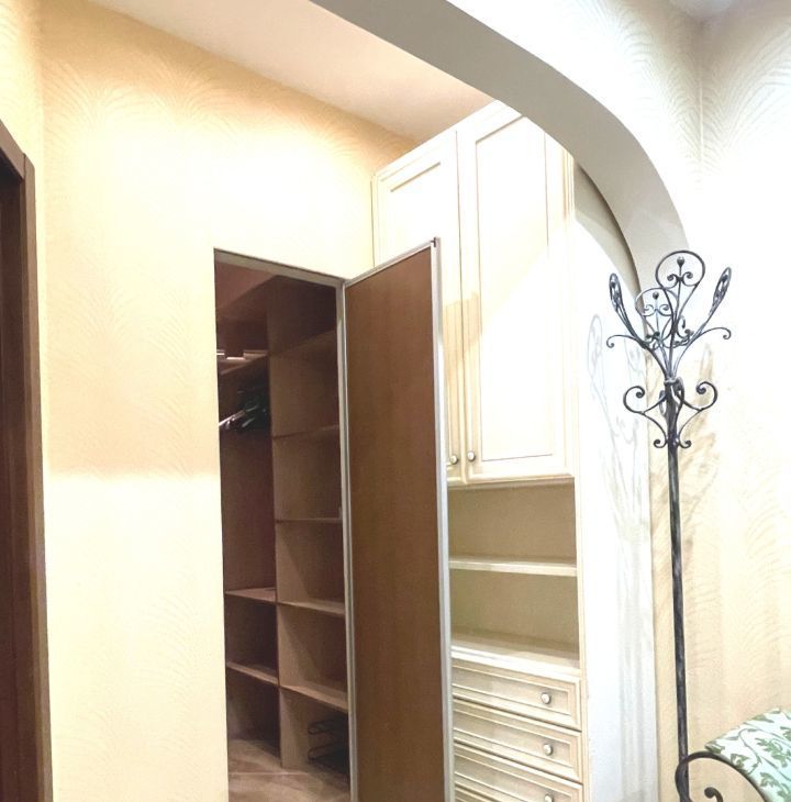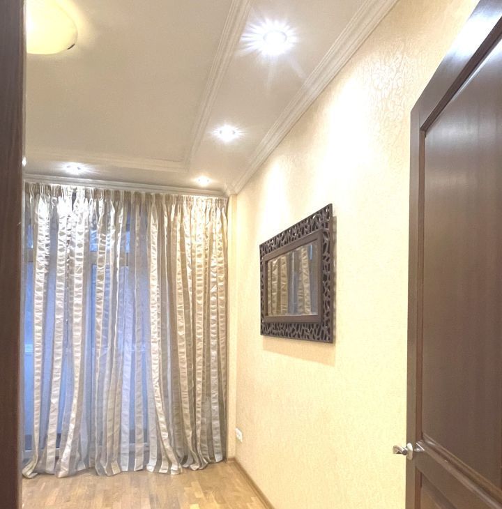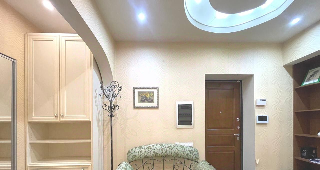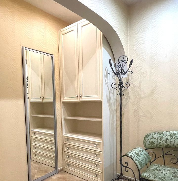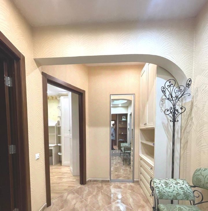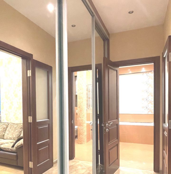 Просторная, удобно и дизайнерски оформленная прихожая с очень вместительным зеркальным шкафом-купе и большой гардеробной.