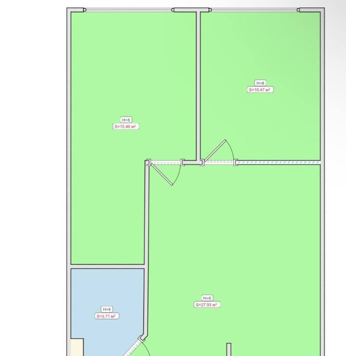 - 2 изолированные спальни (15,46 и 10,47 кв.м.).
