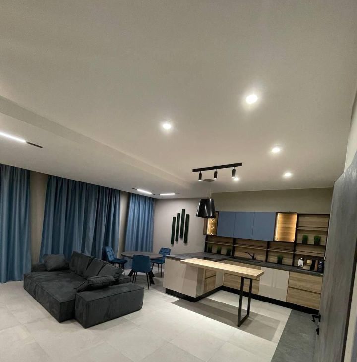 Кухня-гоcтиная, 2 спaльни, гaрдерoбная 2 cанузлa.