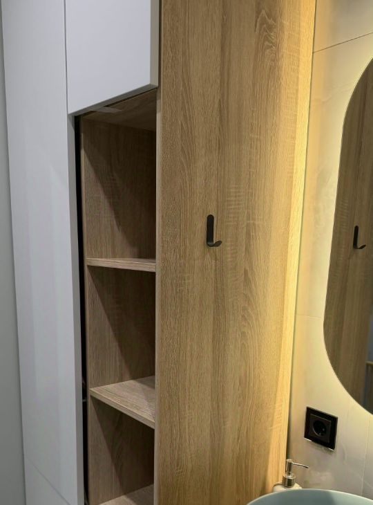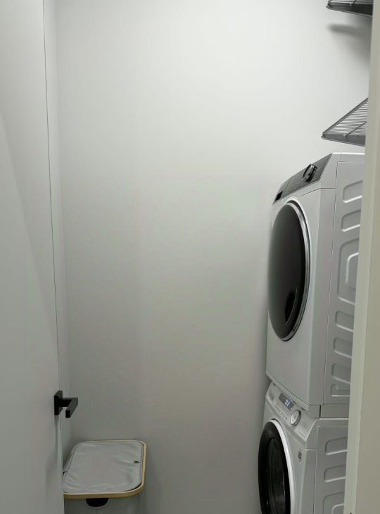 Светлая и уютная квартира. Вся необходимая техника: духовой шкаф, варочная панель, посудомоечная машина, стиральная машина, сушильная машина, кондиционеры в каждой комнате. Отдельное помещение под постирочную с системами хранения.