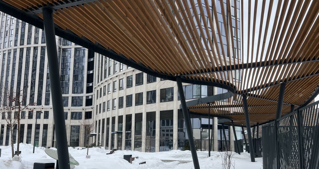 ЖК отличается примечательной архитектурой в виде лепестков, и очень эстетичной архитектурной подсветкой в темное время суток. Красивый дом в не менее прекрасном окружении. Огромное преимущество: отличная транспортная доступность: летящий проспект генерала Дорохова, ул. Мосфильмовская, Мичуринский и Кутузовский проспекты, ул. Лобачевского. Метро максимально близко, 2 линии — тепло и быстро в любой день и погоду. Двор без машин, огороженная территория с большим количеством детских площадок на любой возраст, есть мини-пруд. Особенный лайк шезлонгам в теплое время года. К лету обещают открыть эксплуатируемые кровли с панорамными видам на всю Москву — заживем!