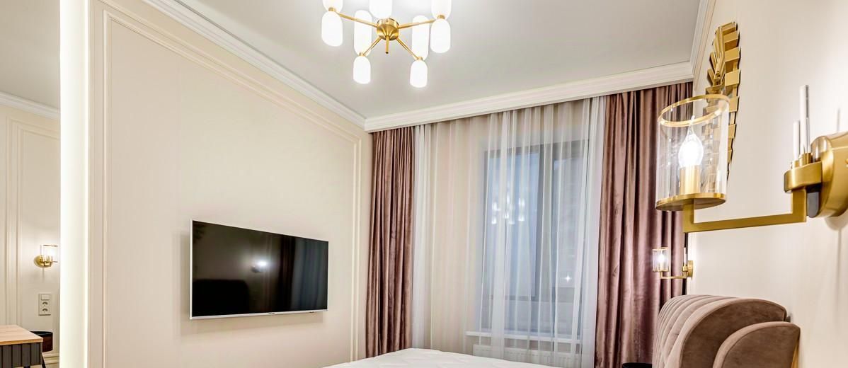 В ЖК Крылья в аренду предлагается светлая трёхкомнатная квартира с гардеробной, полностью укомплектованная всей необходимой мебелью и бытовой техникой.