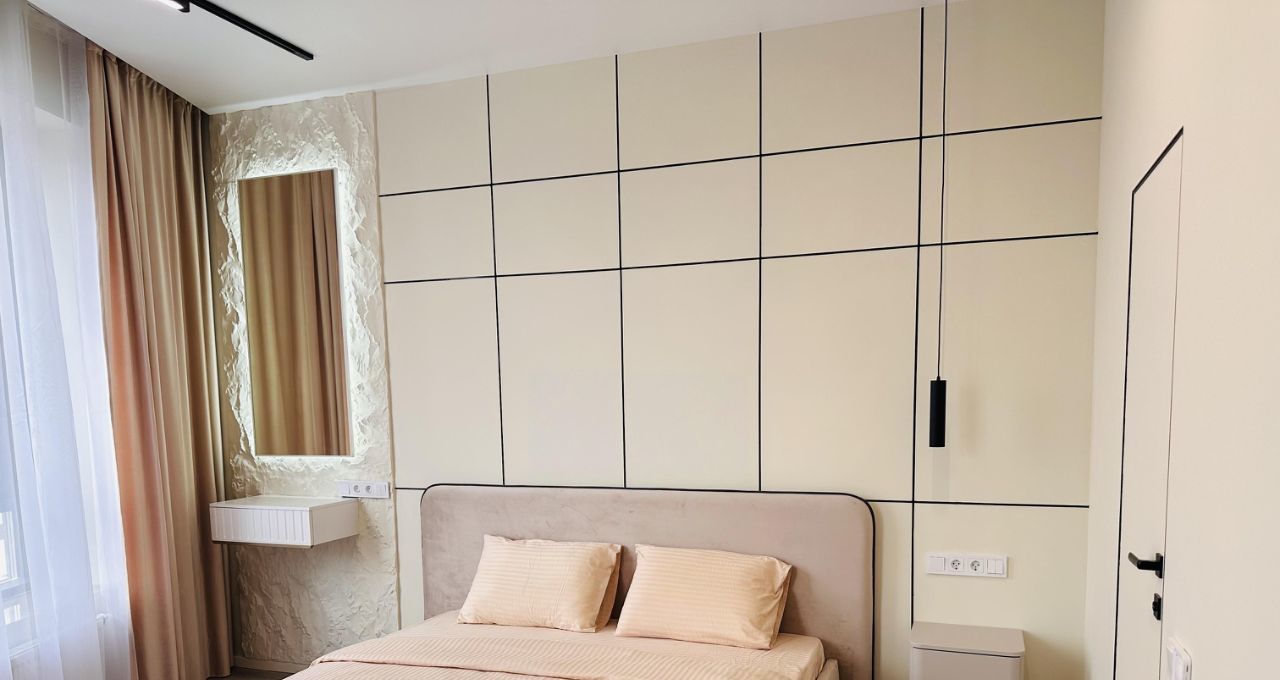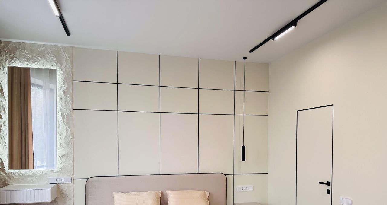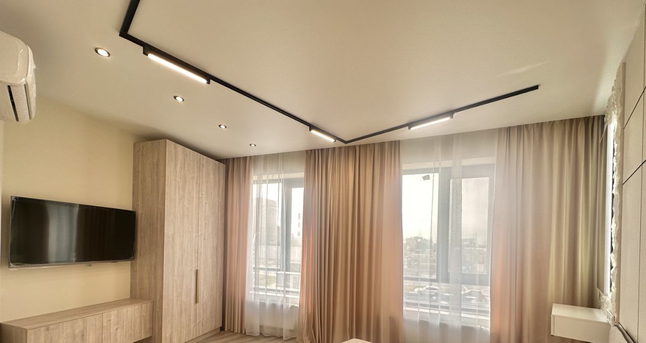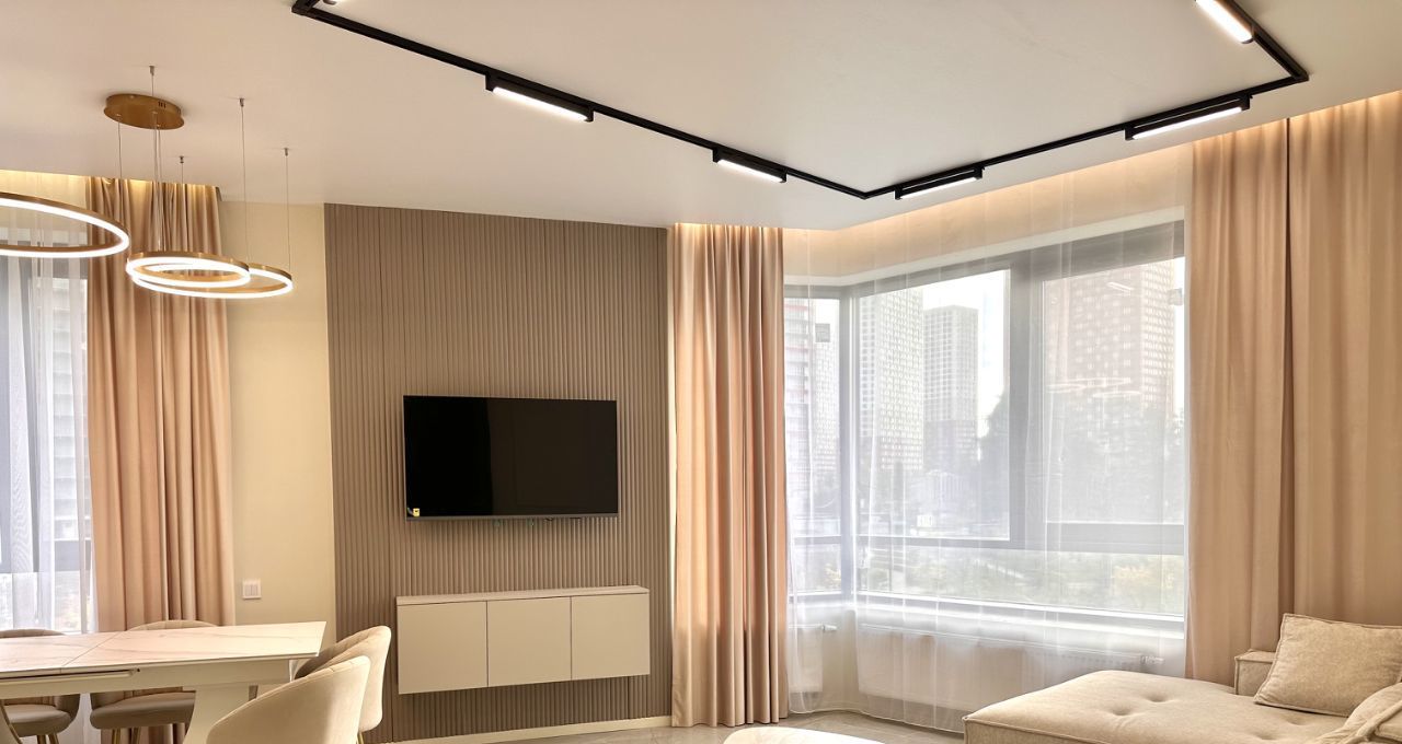 Трековое освещение с регулировкой направления света, люстры с выбором режима освещения. Подсветки в нишах для штор. Мастер-выключатель. Крупноформатные настенные слэбы. Мягкая мебель высокой категории ткани, оба дивана со спальным местом с наполнением memory-foam.