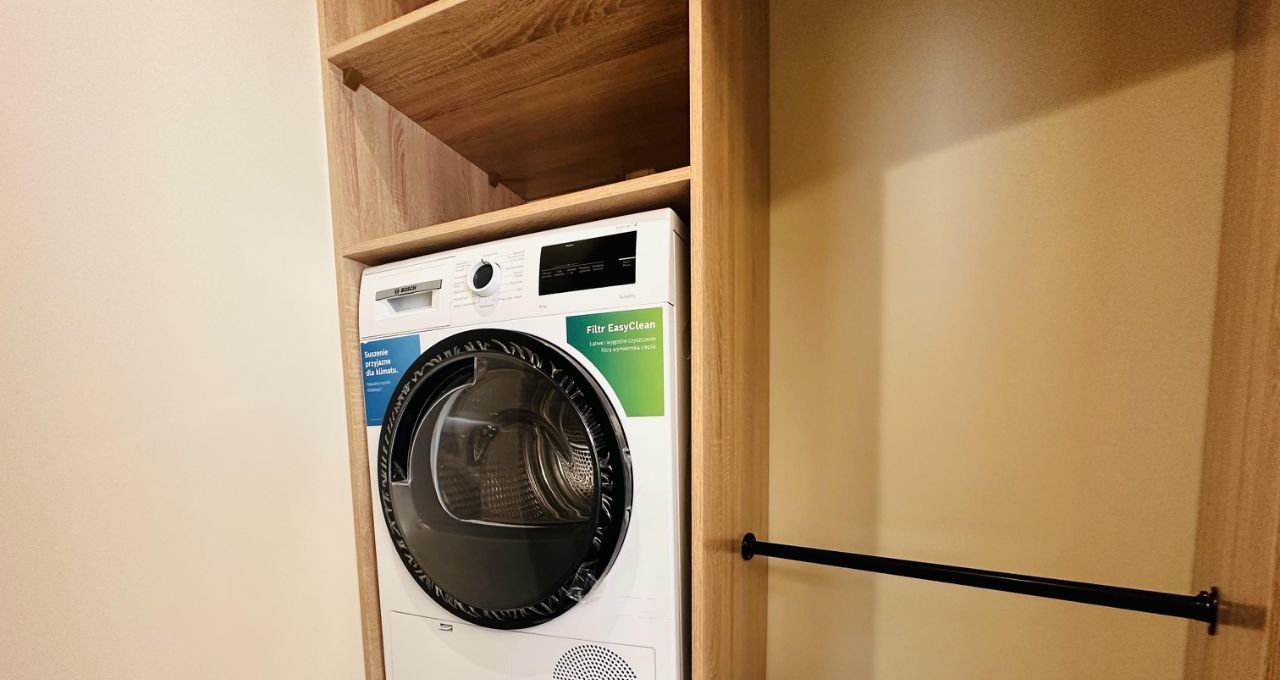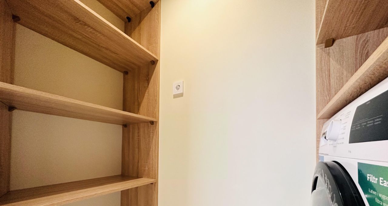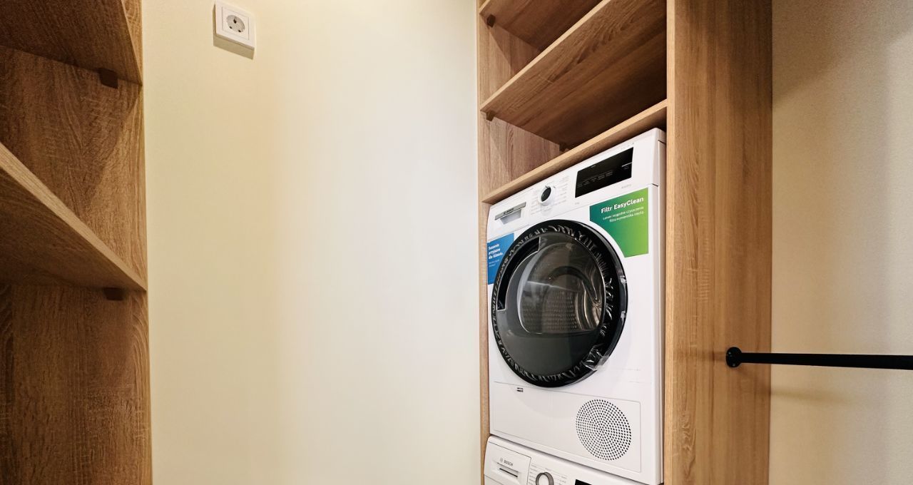 Кроме того, в квартире также есть прачечная с вентиляцией с установленными стиральной и сушильной машинами Bosch.
