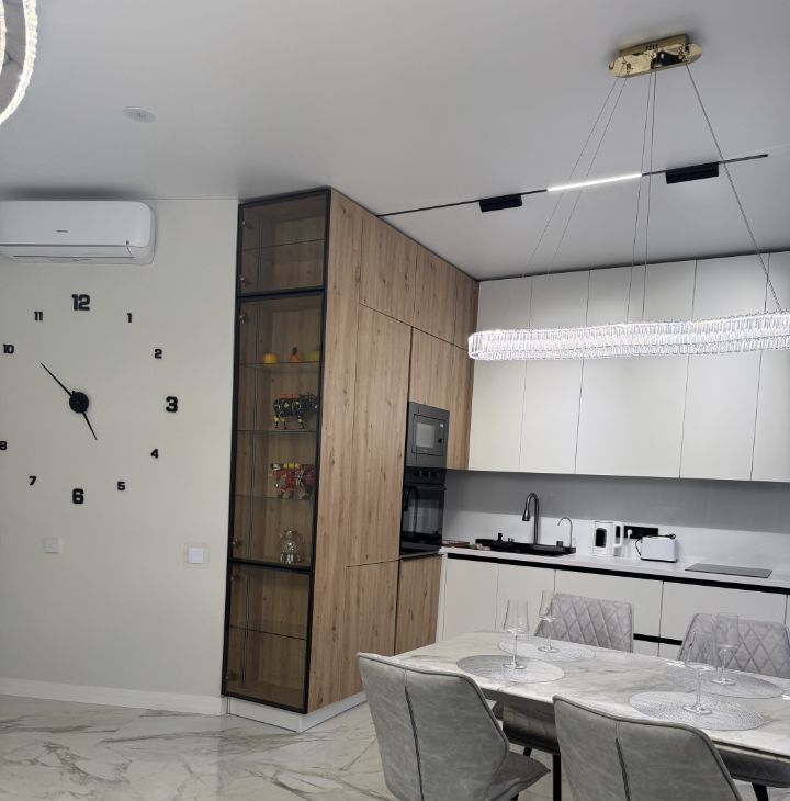 встроенная кухня со всей необходимой бытовой техникой : посудомоечная машина, духовой шкаф,СВЧ, водяной фильтр;