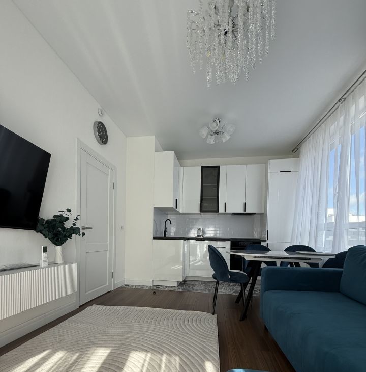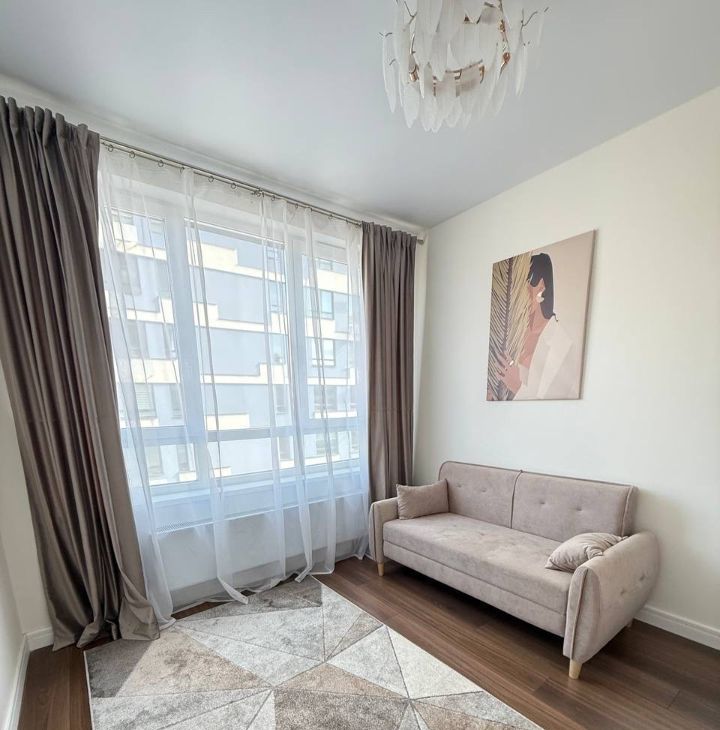 Сдаётся в аренду уютная новая евро-трёхкомнатная квартира в ЖК Прокшино, расположенная по адресу: улица Лобановский Лес, Квартира находится на 9-м этаже 11-этажного дома, построенного в 2024 году.