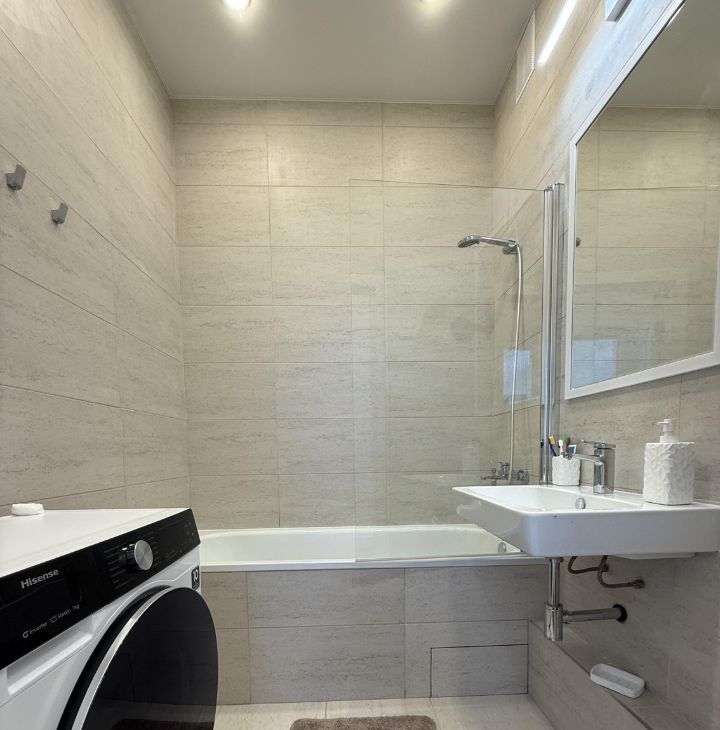 Для вашего удобства в квартире есть кондиционер, холодильник, посудомоечная и стиральная машины, а также два телевизора.