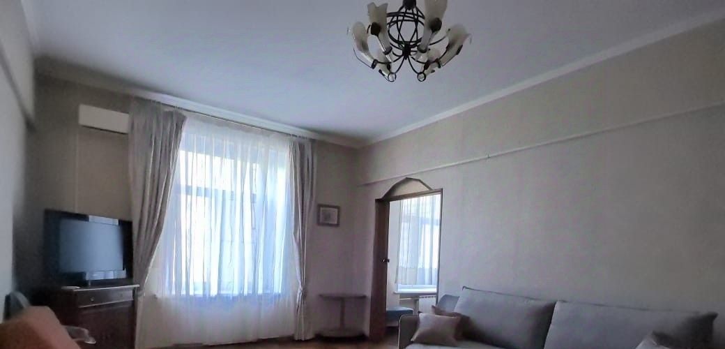 Сталинский дом, высокие потолки, две спальни, двор огорожен, въезд через шлагбаум. В квартире имеется все необходимое для комфортного проживания, включая посудомоечную машину, кондиционер, бойлер для подогрева воды и прочее..