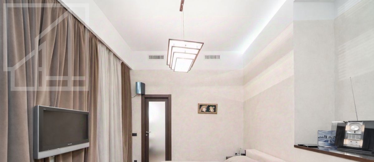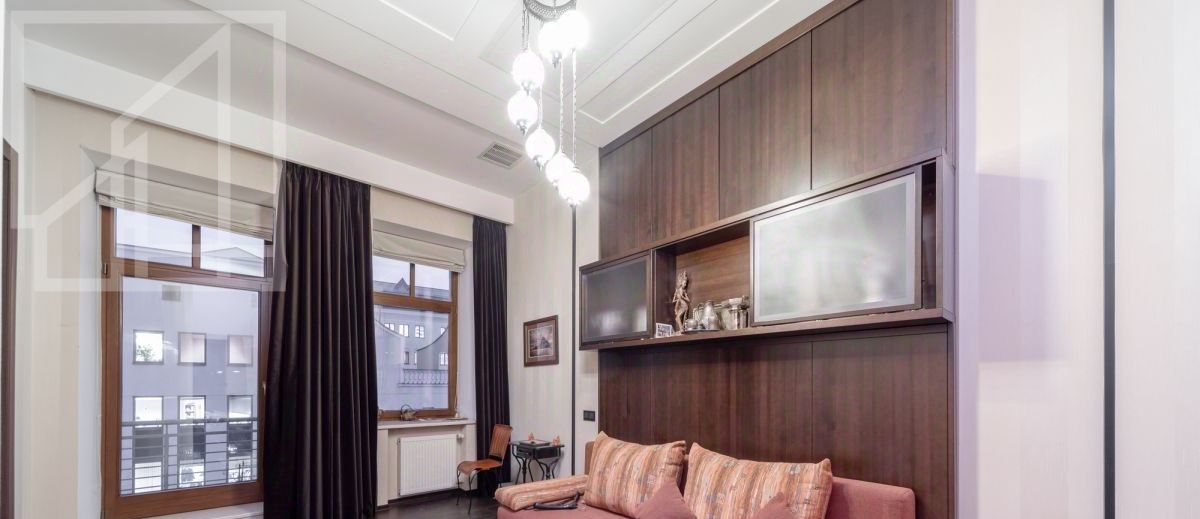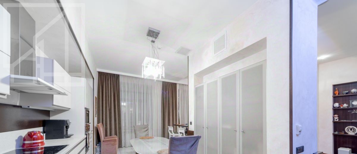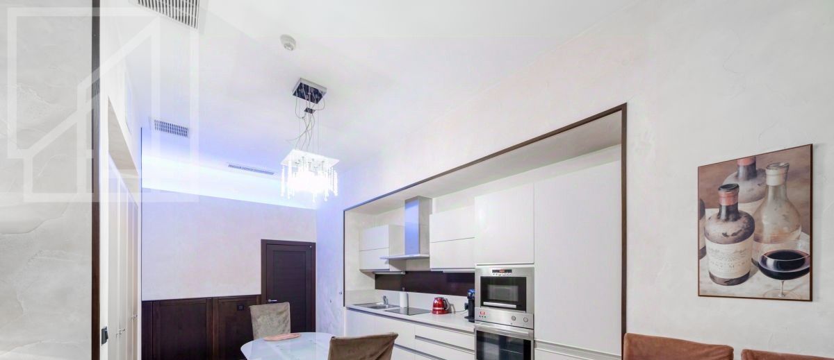 Планировка: кухня-гостиная с обеденной зоной, мастер-спальня с ванной комнатой с окном, кабинет (можно использовать как вторую спальню), просторная гардеробная, гостевой с/у, прихожая, два балкона. Потолки 4м. Квартира полностью меблирована и готова к проживанию.
