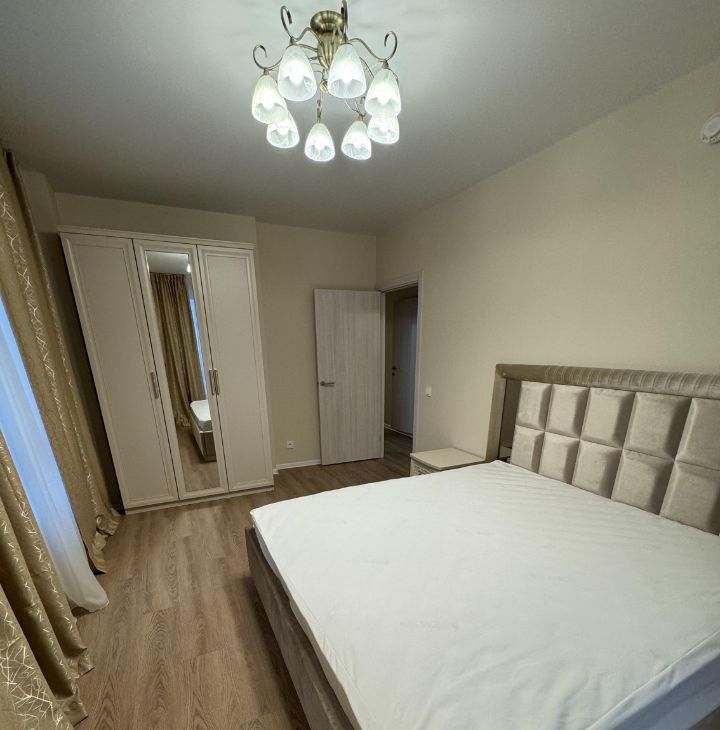 Квартира с ремонтом . В вашем распоряжении две ванные комнаты: одна с ванной, другая с душевой кабиной. В квартире есть вся необходимая техника: кондиционер, холодильник, посудомоечная и стиральная машины. Мебель установлена как на кухне, так и в комнатах.