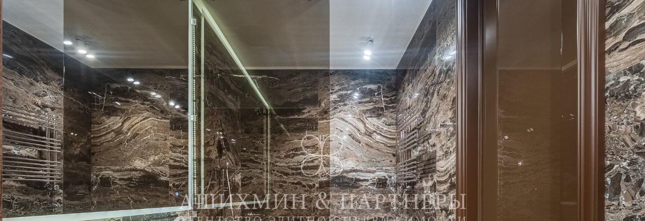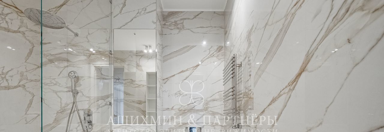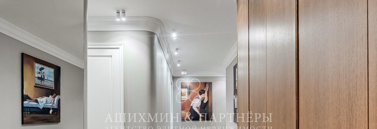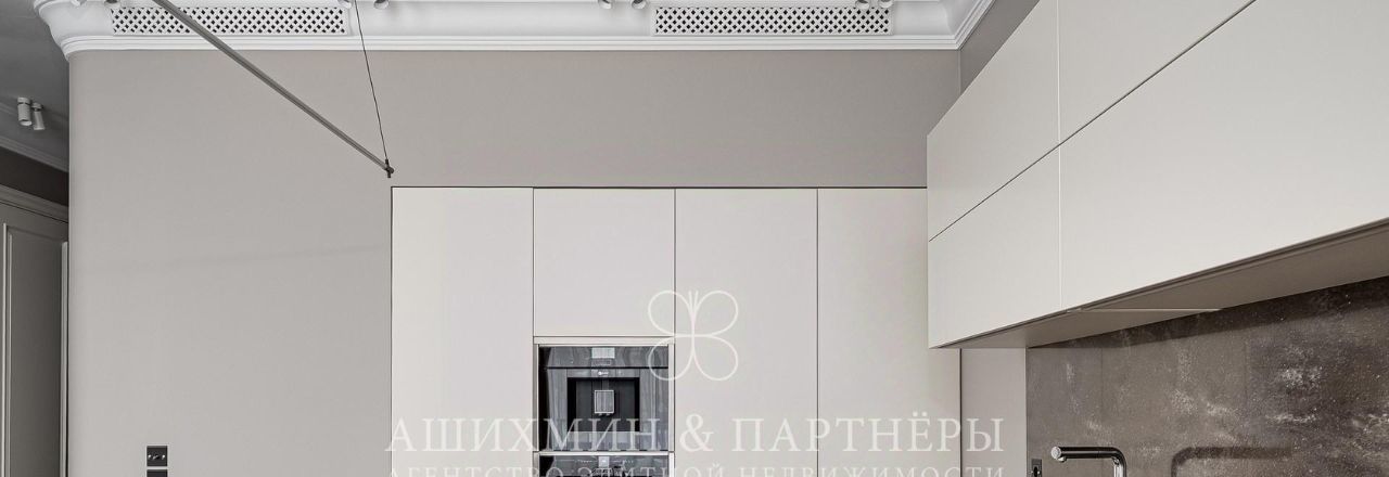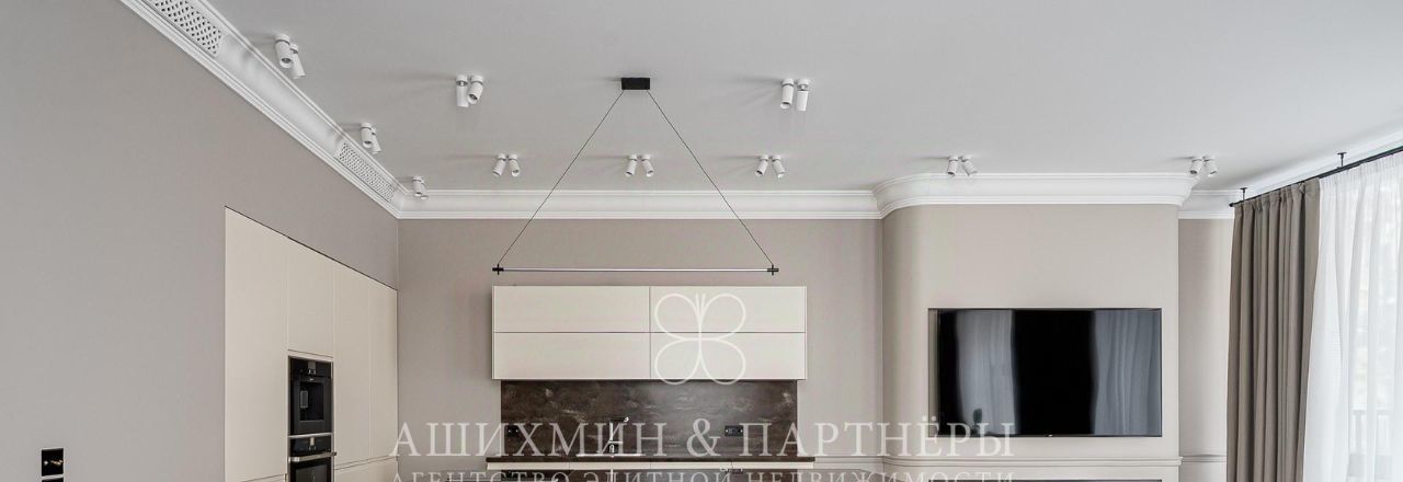 В квартире выполнен авторский дизайн с дорогой отделкой и мебелью: натуральное дерево, мрамор, бытовая техника Smeg и Neff, тщательно подобраны декор и искусство.