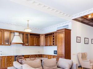 Планировка: просторная кухня-гостиная с обеденной зоной, спальня, жилая комната (можно использовать как спальню или кабинет), два совмещенных санузла с ванной и душевой кабиной, постирочная, прихожая. Квартира частично меблирована, укомплектована необходимой бытовой техникой.