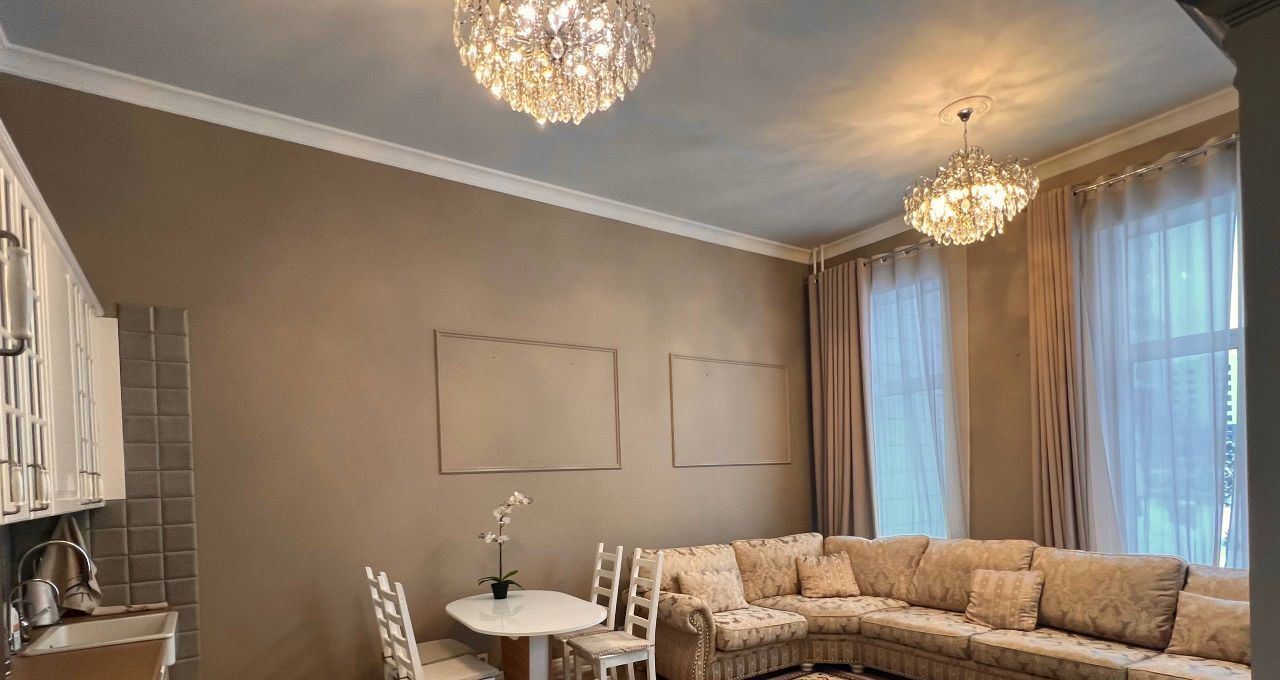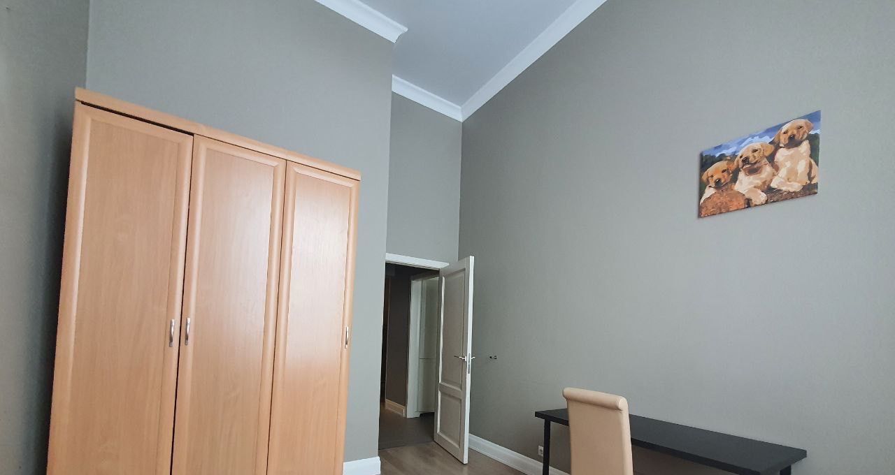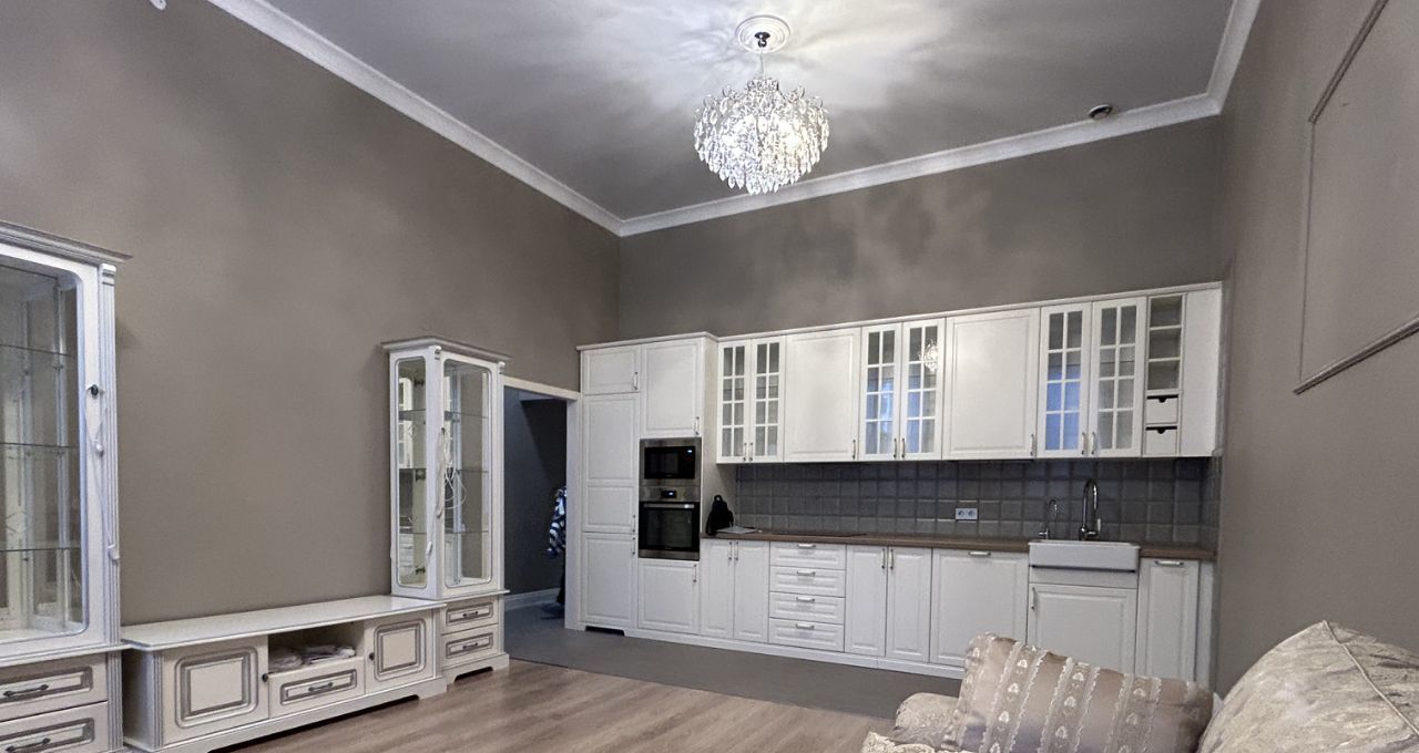 В квартире высокие потолки по 4 метра, два санузла. Окна выходят во двор и на улицу.