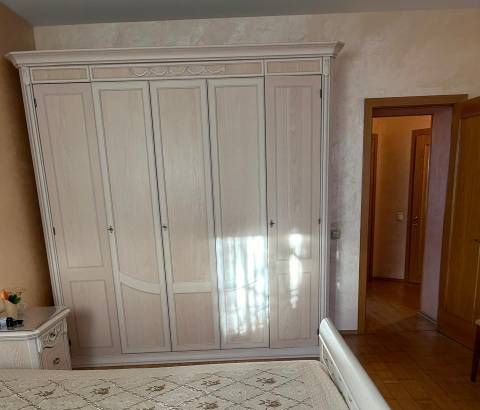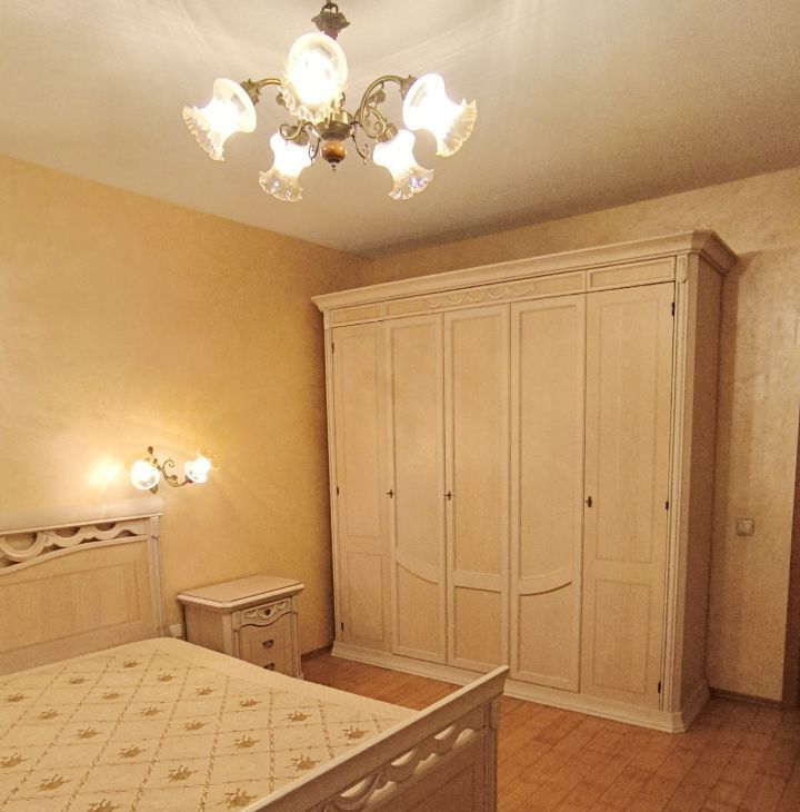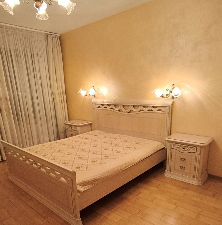 Общая площадь квартиры 68.5 кв.м. В спальне (19.8 кв.м) двуспальная кровать King size с удобным ортопедическим матрасом, просторный гардероб, тумбочки и комод, вся мебель - Италия, кондиционер. Два окна.