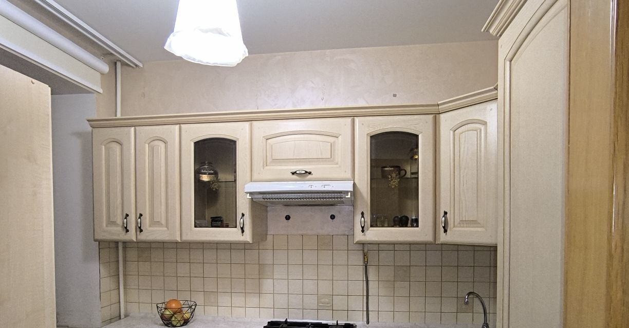 Кухня- настоящий рай для кулинара - оборудована практичной мебелью с встроенной техникой: варочная панель, духовка, вытяжка, посудомоечная машина (все -Electrolux), холодильник Liebherr. Кухня соединена с гостиной (17.7 кв.м), где разместились обеденный стол и гостевой гобеленовый диван, кондиционер, возможно установить телевизор и аудиосистему.