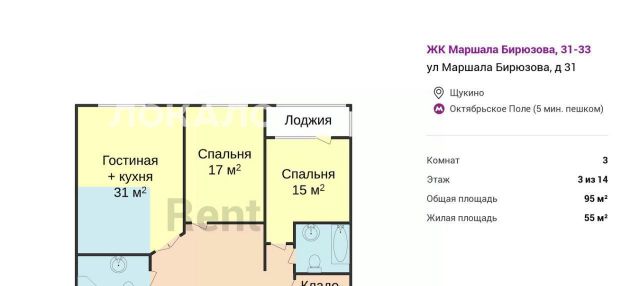 3-к кв. Москва ул. Маршала Бирюзова, 31 (95.0 м²)