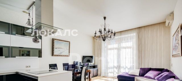БЕЗ КОМИССИИ ДЛЯ АРЕНДАТОРА. Предлагается трёхкомнатная квартира-студия в жилом комплексе "Маршала Бирюзова, 31-33", рядом с метро "Октябрьское Поле". Комнаты располагают необходимой мебелью, в том числе диваном, кроватями и системами хранения. Кухня оборудована гарнитуром со встроенной техникой, включая посудомоечную машину. Комфорт поддерживает кондиционер.