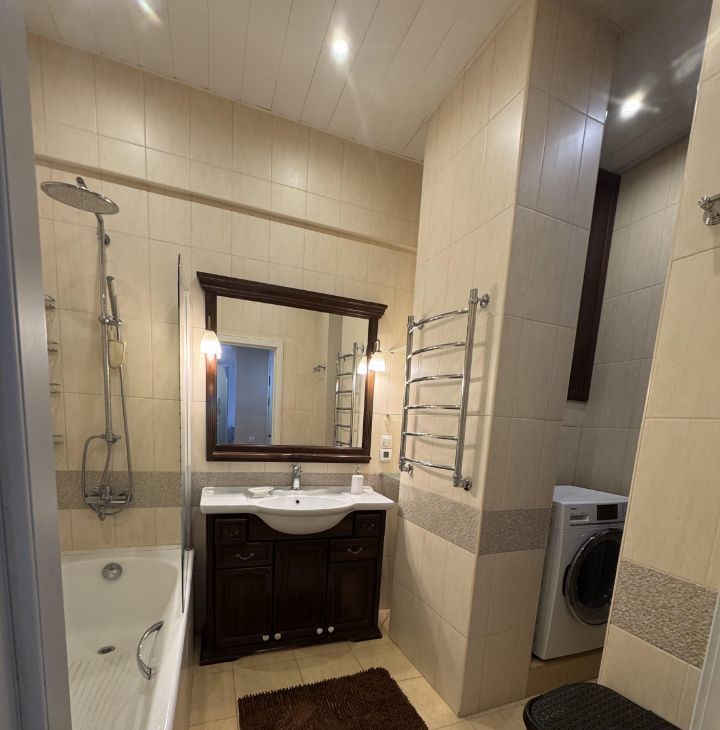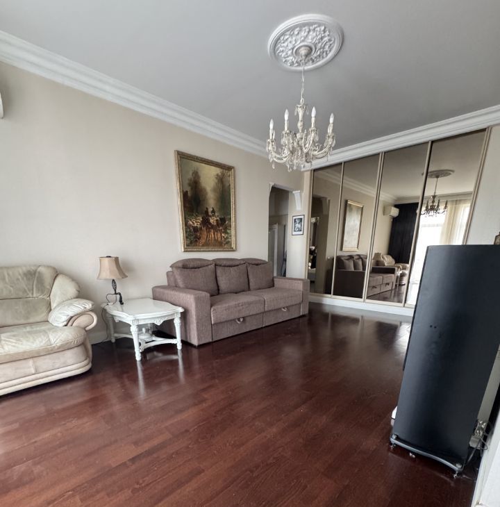Квартира с хорошим ремонтом и удачной планировкой: кухня гостиная, две изолированные комнаты, два сан.узла, балкон. Вся необходимая мебель и техника: кондиционеры, холодильник, посудомоечная машина, телевизор и стиральная машина, бойлер, увлажнители воздуха, пылесос.