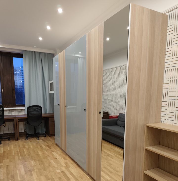 Уютная светлая 3х-комнатная квартира. Просторная гостиная и 2 изолированные комнаты. Застекленный балкон. Огромное количество шкафов. Два санузла, душевая кабина. Закрытый зелёный двор (без машин). Консьерж. Проживание строго без животных. Оперативный показ. Готова к заселению.