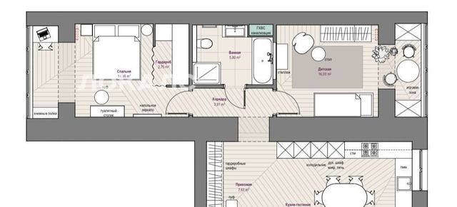 В квартире есть все необходимое для комфортного проживания семьи с детьми.
