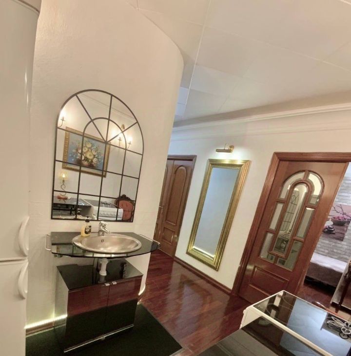 Сдаётся пол квартиры с двумя двухспальными кроватями. В комнате 30м есть кондиционер, рабочий стол 3м, два кресла, зеркальная стенка для хранения вещей. В кухне холодильник, обеденный стол, стулья, мойка, сушка для посуды, кухонный шкаф для продуктов, плита, чайник, СВЧ, питьевая вода. Стиральная машина в санузле, подогрев мраморных полов.