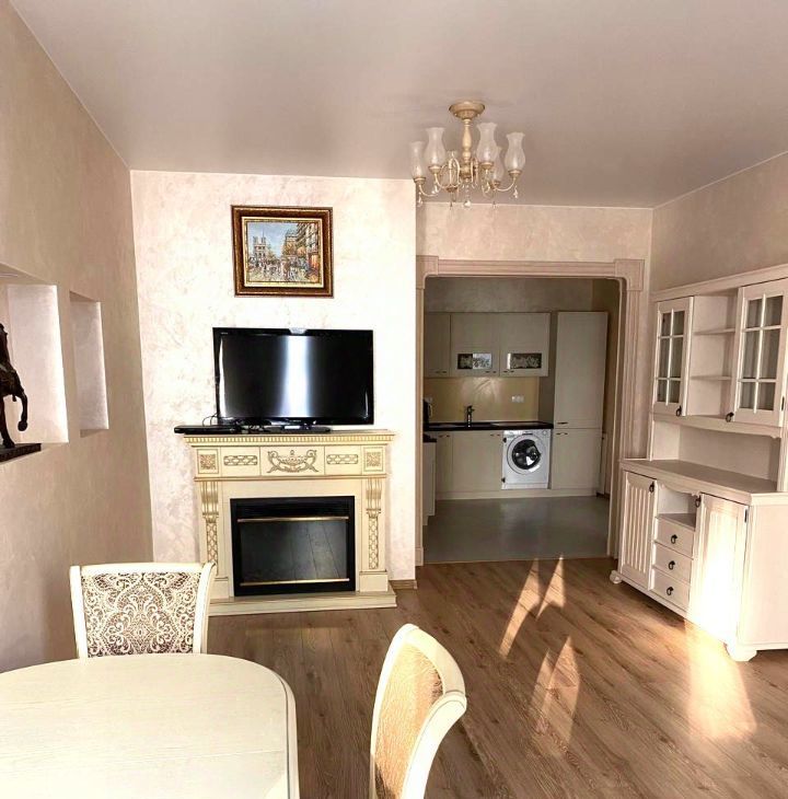 Квартира имеет три просторные изолированные комнаты, два санузла и просторную кухонную зону. В квартире сделан высококачественный ремонт. Покрытие стен венецианская штукатурка, итальянские и бельгийские отделочные материалы. Установлены теплые полы в санузлах, холле и комнатах. В квартире имеется два просторных санузла. Установлена сантехника Villeroy&Boch, инсталляционные системы Hansgrohe.