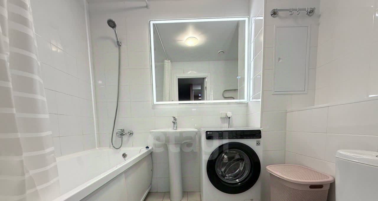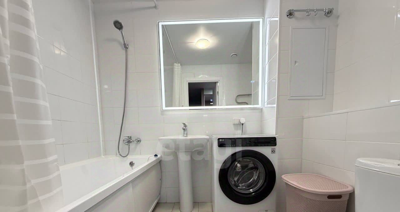 * Санузел оснащён стиральной машиной Bosch и большим стеклом с подсветкой.
