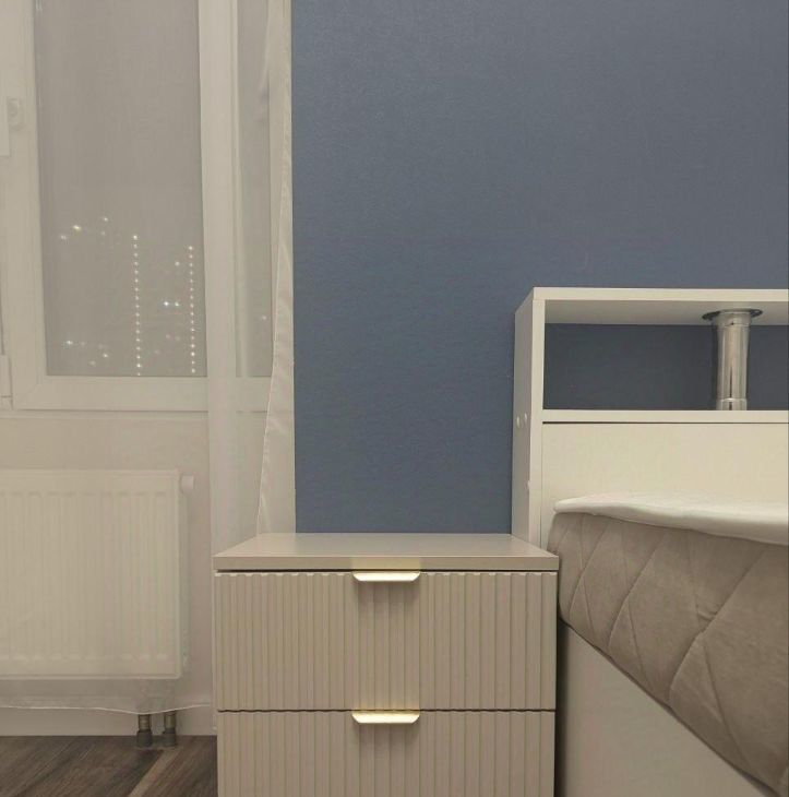 - Спальня 2 — кровать с удобным матрасом, место для рабочего стола; легко установить дополнительную мебель.
