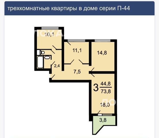 3-к кв. Москва ул. Молдагуловой, 16К3 (73.8 м²)
