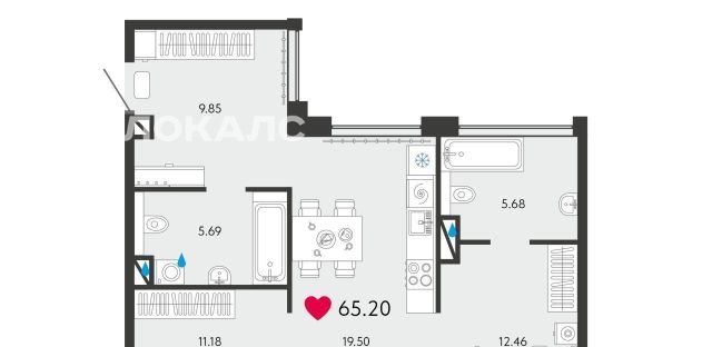 Квартир с такой планировкой всего 6 во всём ЖК — предложение действительно редкое.
