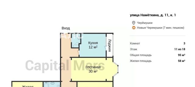 3-к кв. Москва ул. Наметкина, 11К1 (95.0 м²)