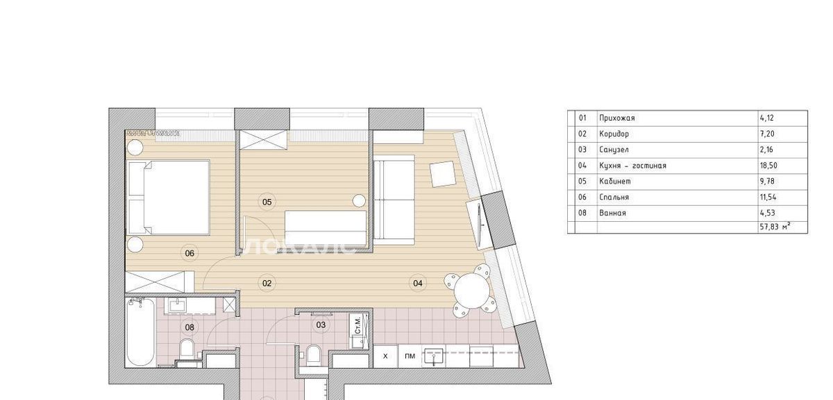 Планировка см. фото - кухня-гостиная 18,5 метра, две спальни 11,5 и 10 метров, два сан. узла. Требования к кандидатам - строго без животных.
