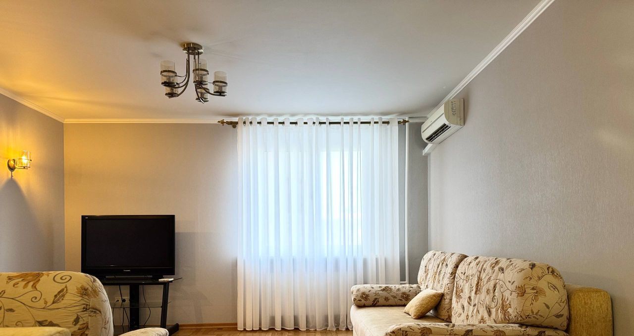В гостиной: просторная зона отдыха с ортопедическими диванами (раскладывается в двуспальную кровать), ТВ-зона, кондиционер