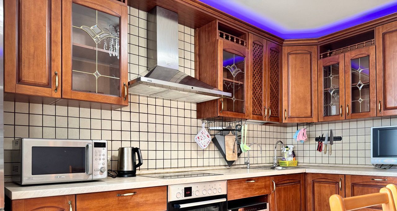 Кухня: холодильник, плита, вытяжка, микроволновая печь, посудомоечная машина