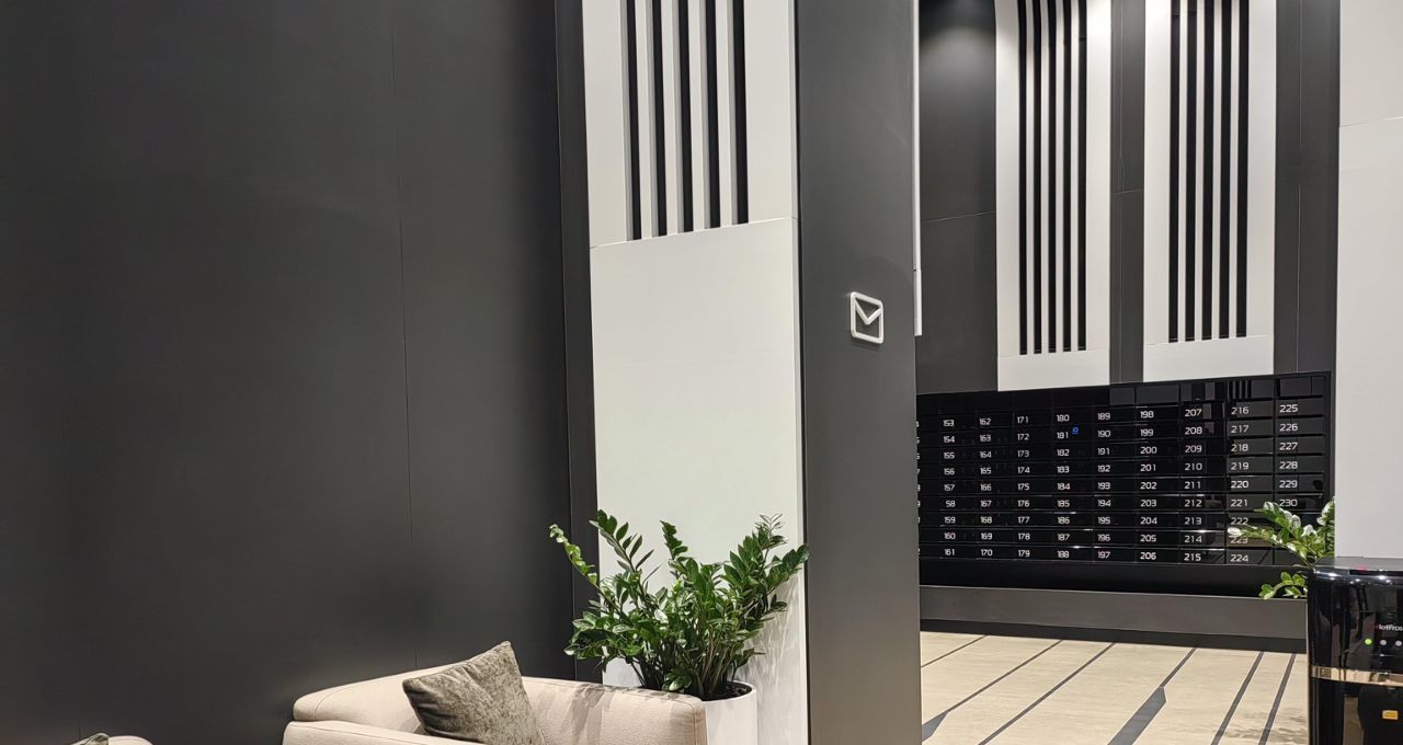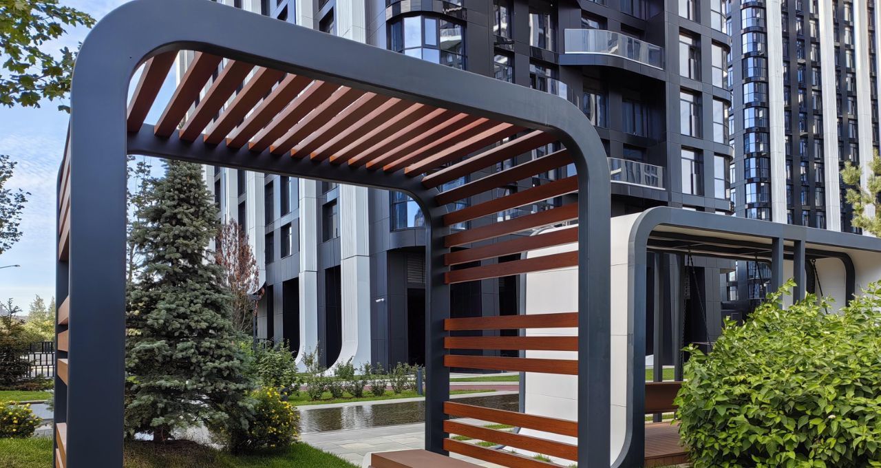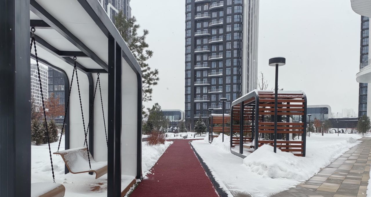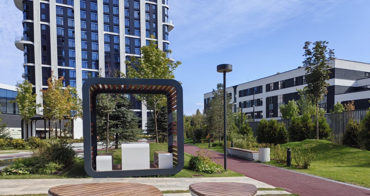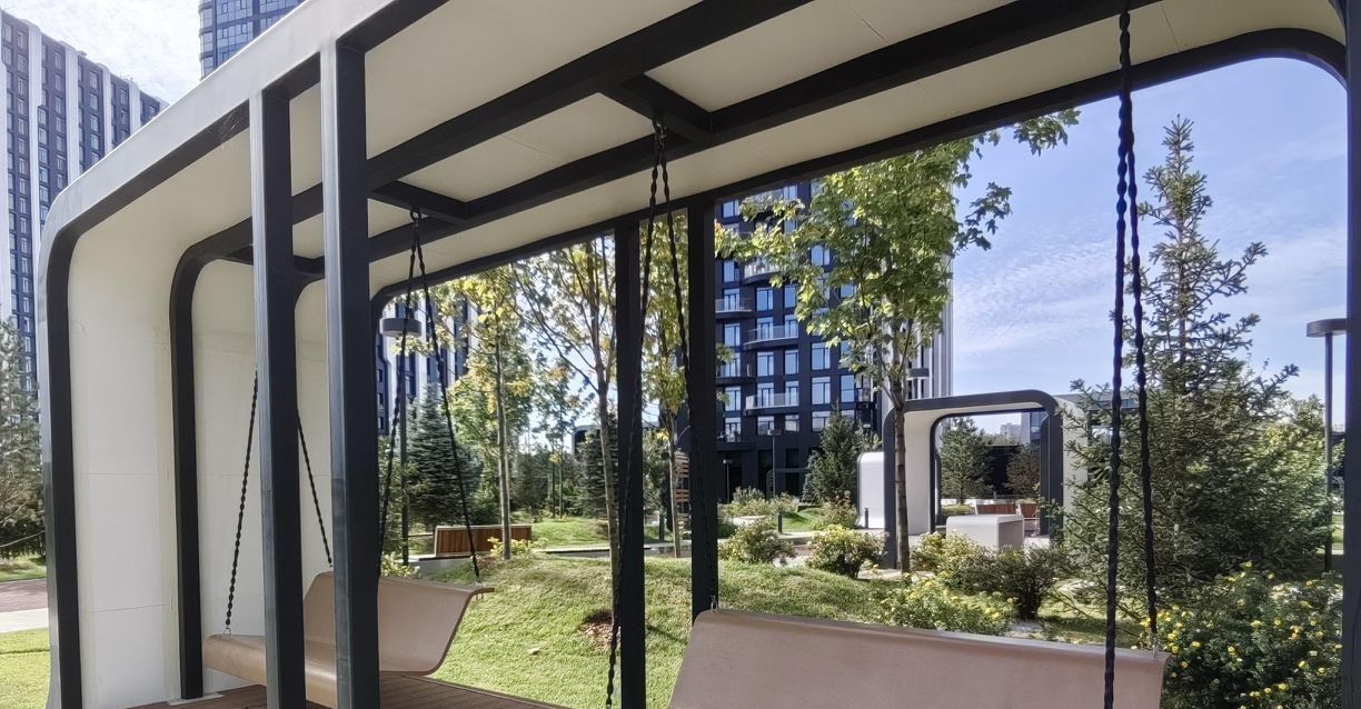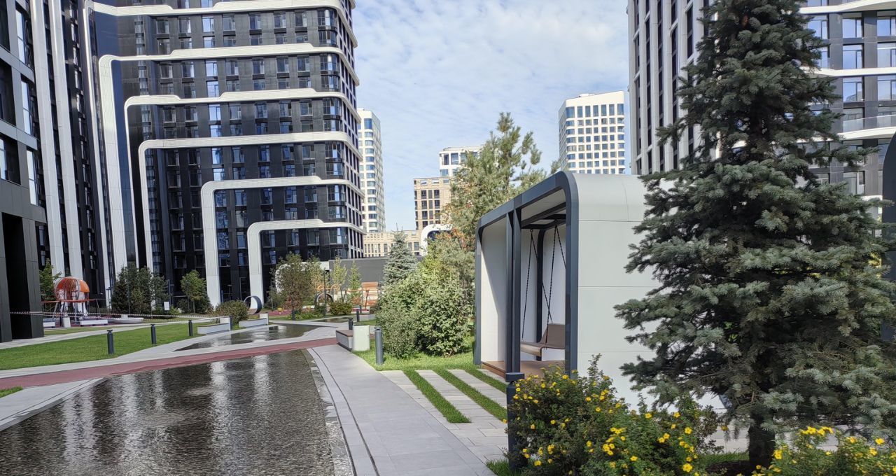 Шикарный и очень зелёный двор с рекой, общественные зоны: зал гимнастики, 2 спортзала, хоккейная комната, детская уже доделаны и с апреля будут функционировать бесплатно для жителей Острова 2.
